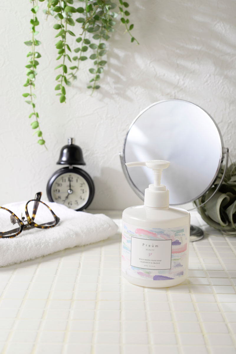 保湿成分を配合したハンドソープは、手に取った瞬間から滑らかな手触りでしっとりとした泡が優しく包んでくれます。 洗い上がりはべたつかず、さらりとやわらかに。洗うたびに肌のコンディションを整えてくれます。 ほんのりパール入りで洗い上がるたびに華やかな手触りに。さわやかな柑橘系の香りも広がります。