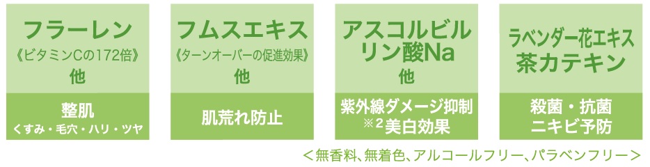 植物由来美肌成分+特別有効成分が、エイジングケアとリフレッシュを同時に叶えます!健康的なお肌の土台作りに。